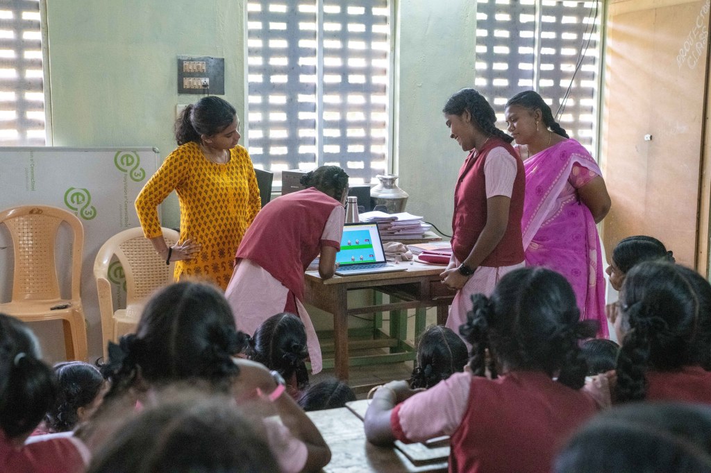 This was my first day teaching at Girls Higher Secondary School. There were 30 girls between the grades 6-8. Since their computers were not compatible with the internet they were not able to use the computers they had to program. Instead, I used my personal computer to program. They were so excited to just see a computer, let alone to program on it. I taught them basic programming using the block programming language Scratch. They learned how to move a Sprite (object) across the screen. They were so sweet and a blessing to teach!