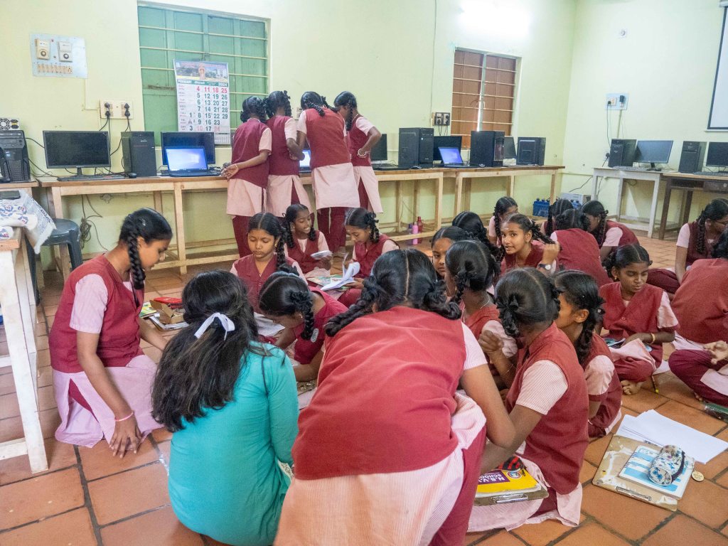 This was my first day teaching in 2024 at the Girls Higher Secondary School. I taught at the All-Girls School first for one day and a total of 8 hours. This time when I came I brought a total of 20 laptops and 45 Micro: Bits. This was in partnership with my Girl Scout Gold Award Project where I collected a donation of 20 laptops from Medhost and 45 Micro: Bits from people who read about the cause of this project. The purpose of collecting laptops was when I taught there last time there was the issue of electricity. Since Pattiveeranpatti is a very small village, the power cuts off a lot and if you are working on a code the code will not save. So, I collected laptops so that work could be done even if the power went out. The Micro: Bits was so that the students would learn Python more easily and be interested. Micro: Bits have a small LED board where you can program using Python to display images. They also have a microphone, touch sensors, and many buttons that you can program which allow it to be multi-functional. Using this allows students to see the result of what they are coding and makes it easier for them to understand and piques their interest. When I taught them, I saw a massive improvement with them. They understood each step which allowed them to grasp the concept better. I also provided each of them with a curriculum as well as Python projects that they could use on their own time. They were able to program a rock, paper, scissors game by the end of the day and were much more excited about coding than before. I know this because I asked them who is interested in going into coding as a career path last time and only 3 students raised their hands and this time 3/4 of the class raised their hands! I am grateful that I was able to see and teach them again. This time I truly felt closer to them and their tremendous growth was a sight to see. I truly look forward to seeing them next year!